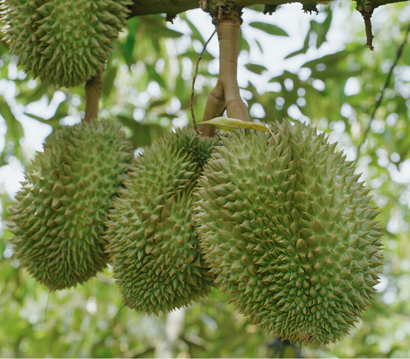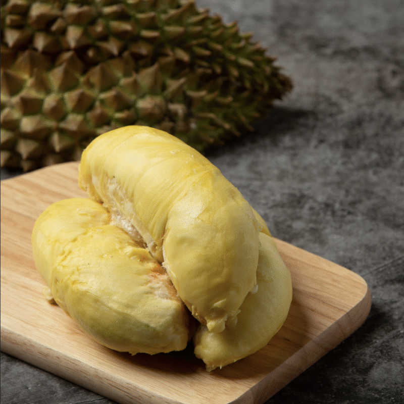 Giống sầu riêng Thái Lan nổi bật với cơm vàng dày, vị ngọt dịu, kết cấu kem mịn, mùi thơm nhẹ và hạt nhỏ